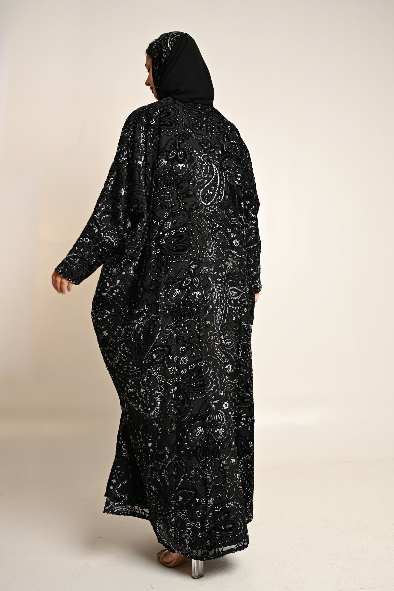 عباية مخمل أسود مطرز بنقشة بيسلي فاخرة