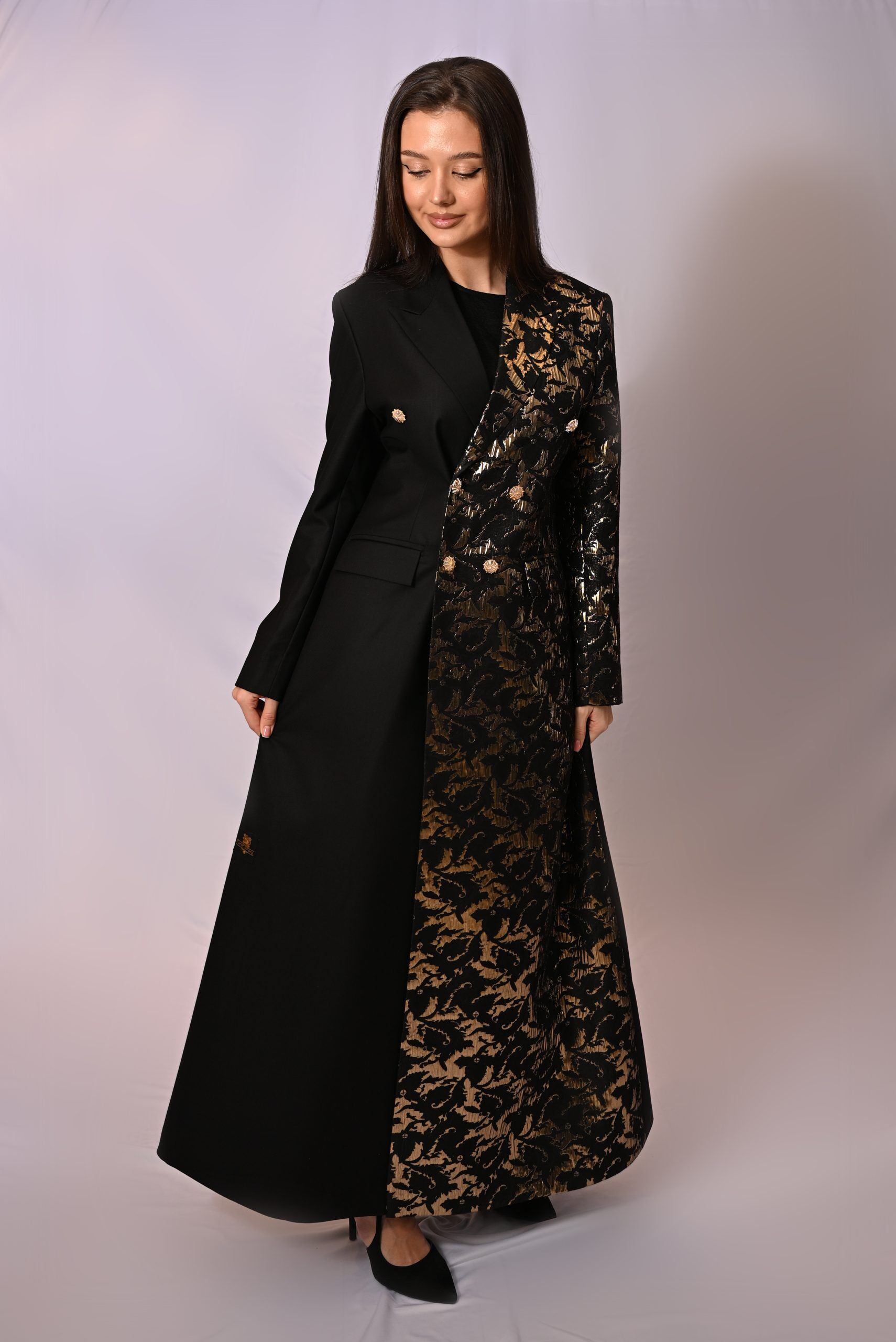 تألقي بأسلوب عصري وجريء مع هذه العباية الفريدة التي تجمع بين تصميم البليزر الأنيق واللمسة الشرقية الراقية، وهي من إبداعات المصممة فرات الفرج ومتوفرة حصريًا في بوتيك فرات الفرج. إنها قطعة استثنائية تخاطب المرأة العصرية التي تبحث عن التميز والتفرد في إطلالتها.